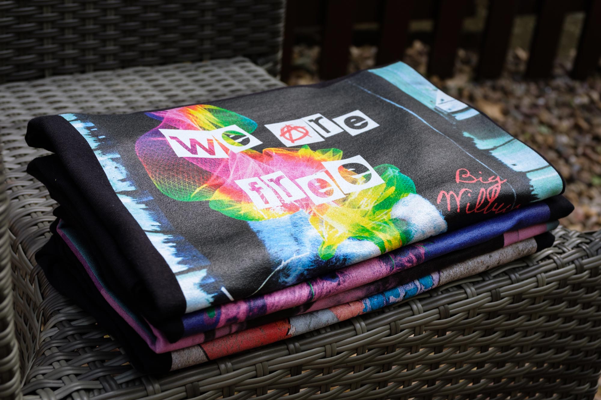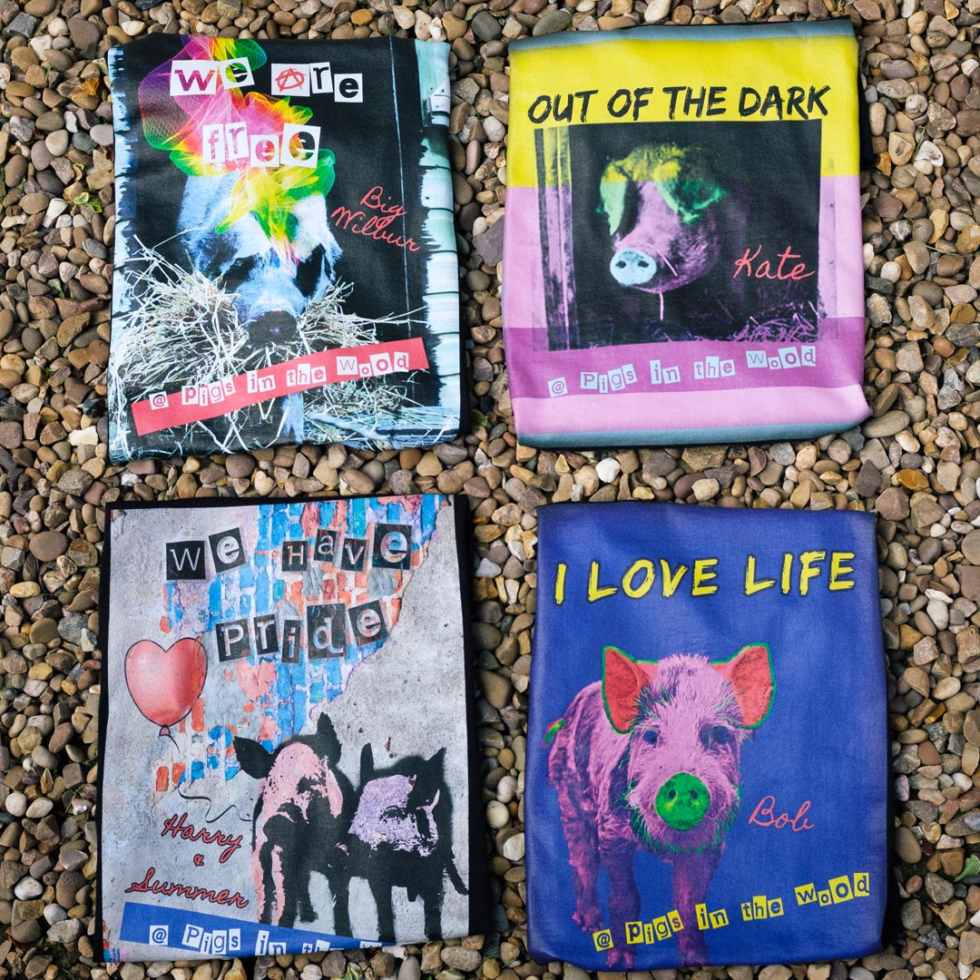 Client brief; Create an anarchy style T-shirt collection to appeal to visitors attending the woods. The pigs should be portrayed escaping from darkness into freedom through photo manipulation.