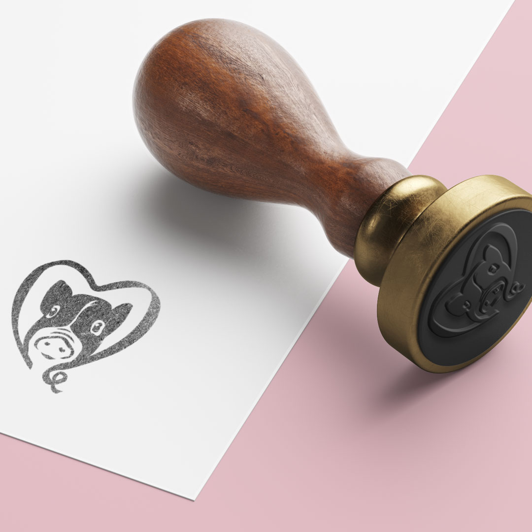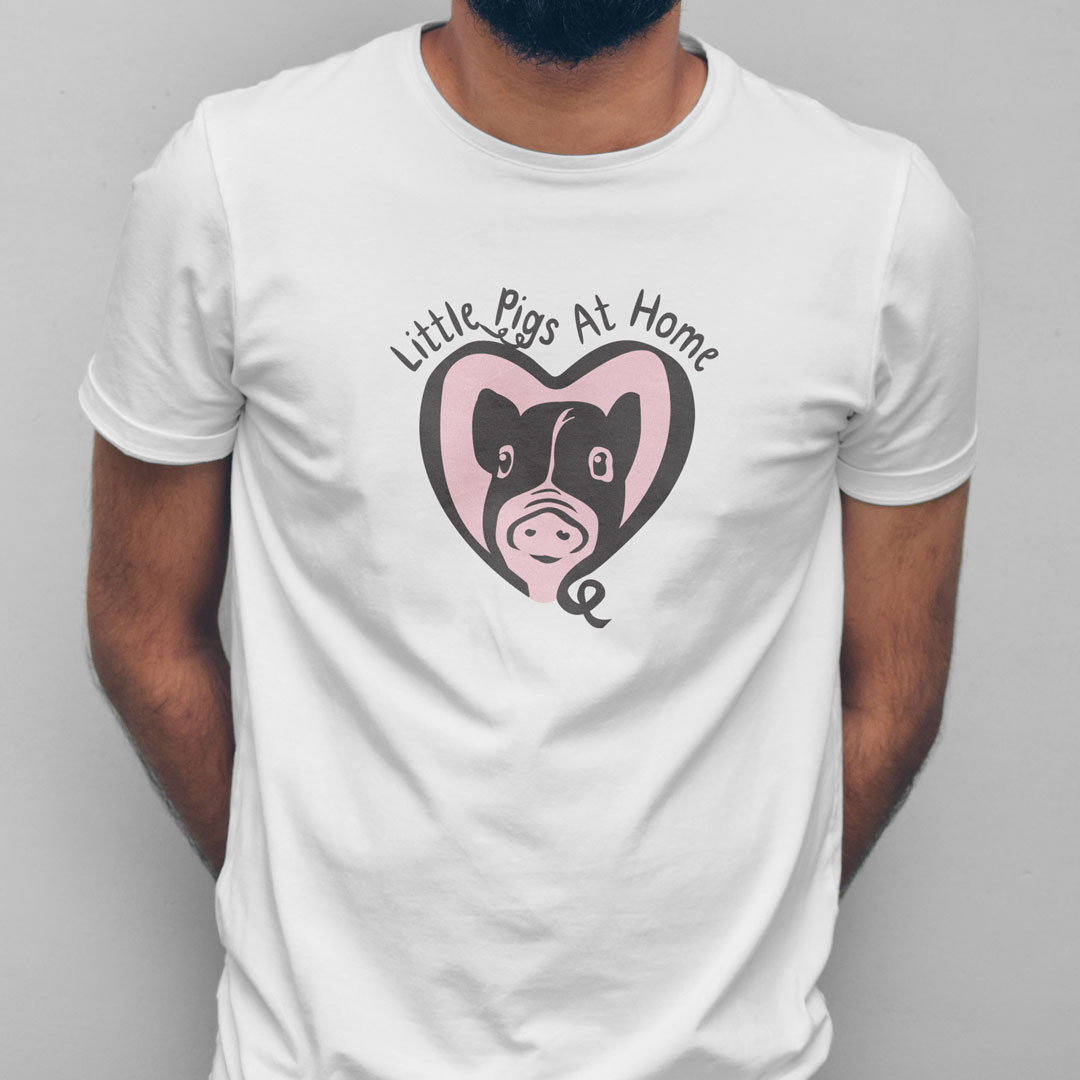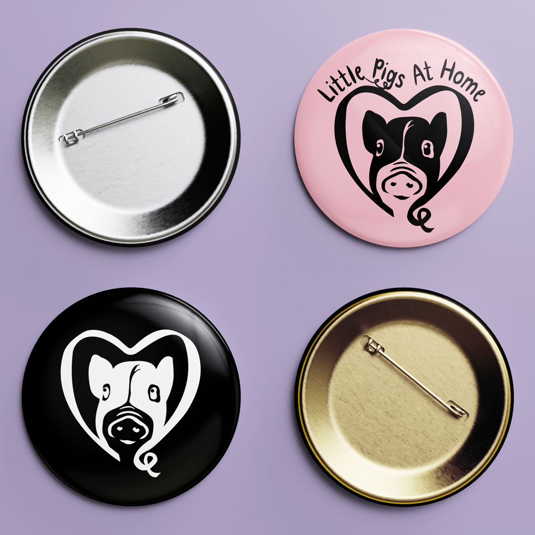 Client brief: Create a logo for an animal sanctuary called Little Pigs at Home. It should be versatile in order to be used across a variety of materials such as, T-shirts, badges, business cards and stamps. It will need to translate well across digital and printed platforms. Three words to describe the sanctuary are: compassionate, safe and love and the pigs should be represented within the logomark.