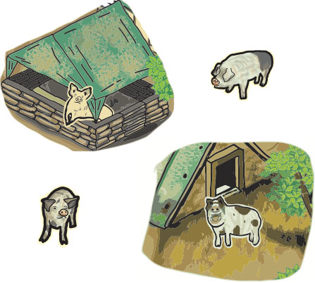 Information had to be gathered to get features as close to the woods as possible. The muted colours set a natural tone and the perspective creates a miniature feel to the digital painting. The individual personalities of the pigs were captured through their expressions, postures and markings.