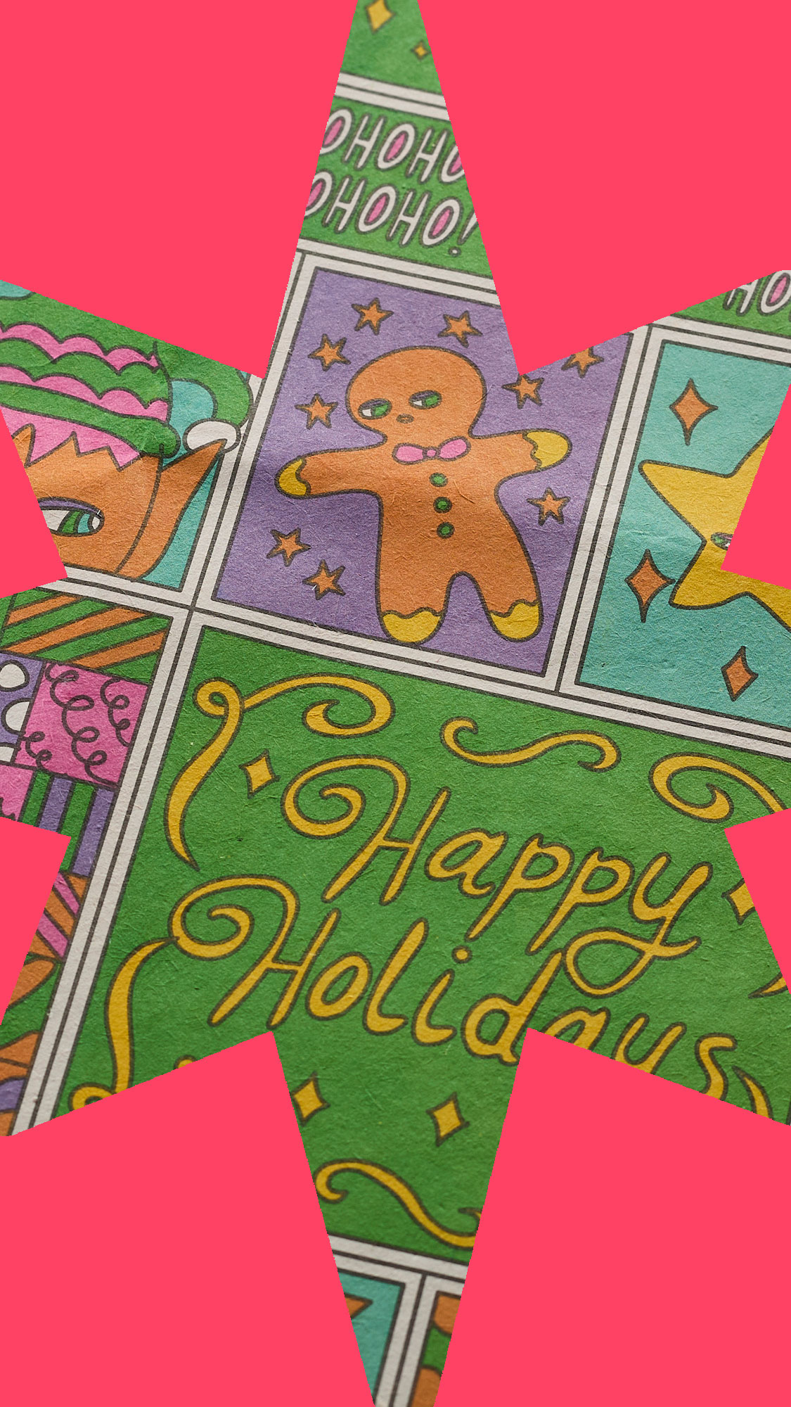 I created this colourful and imaginative Happy Holidays design, which was printed on beautiful and sustainable Lokta paper and was used to wrap around a customer's favourite bath bomb!