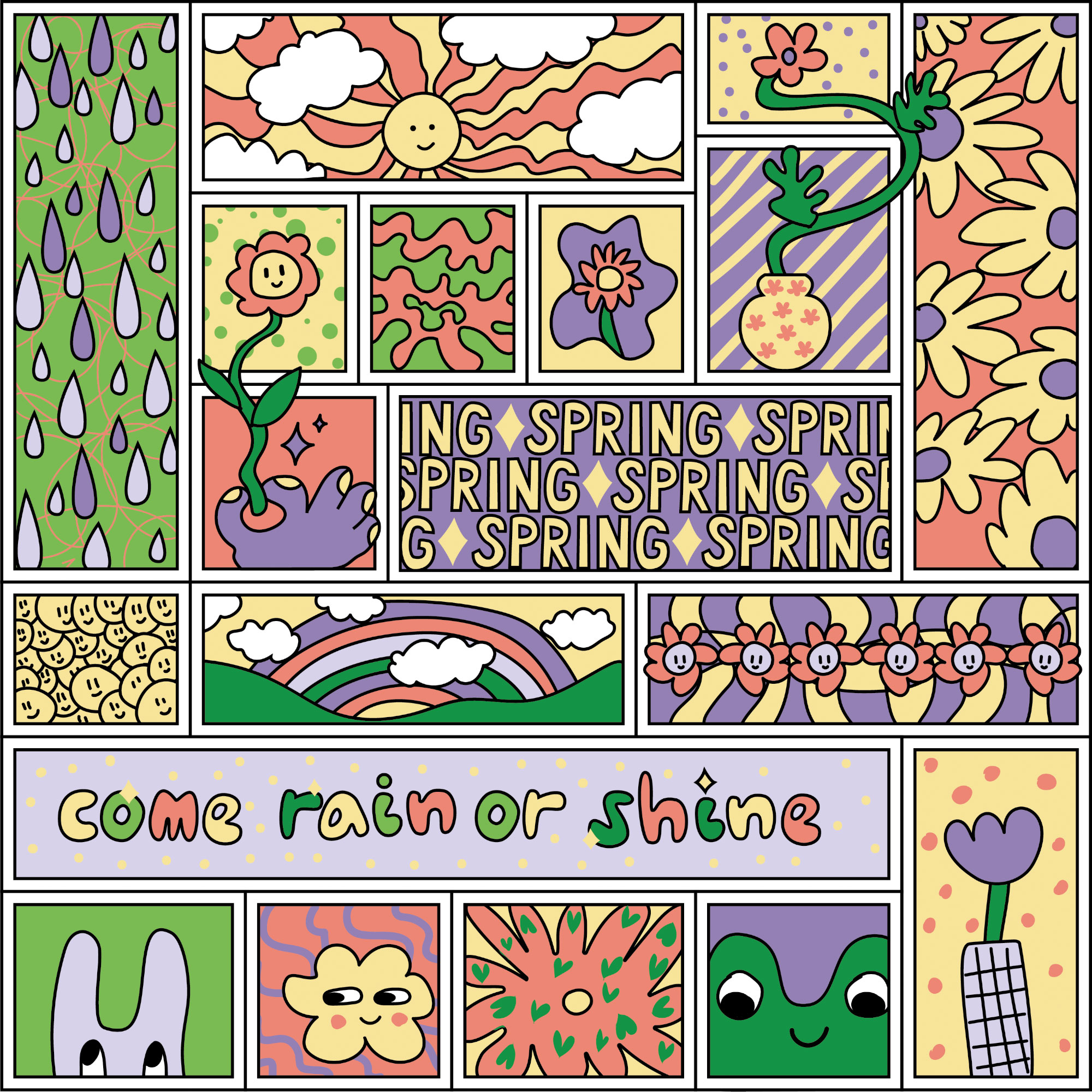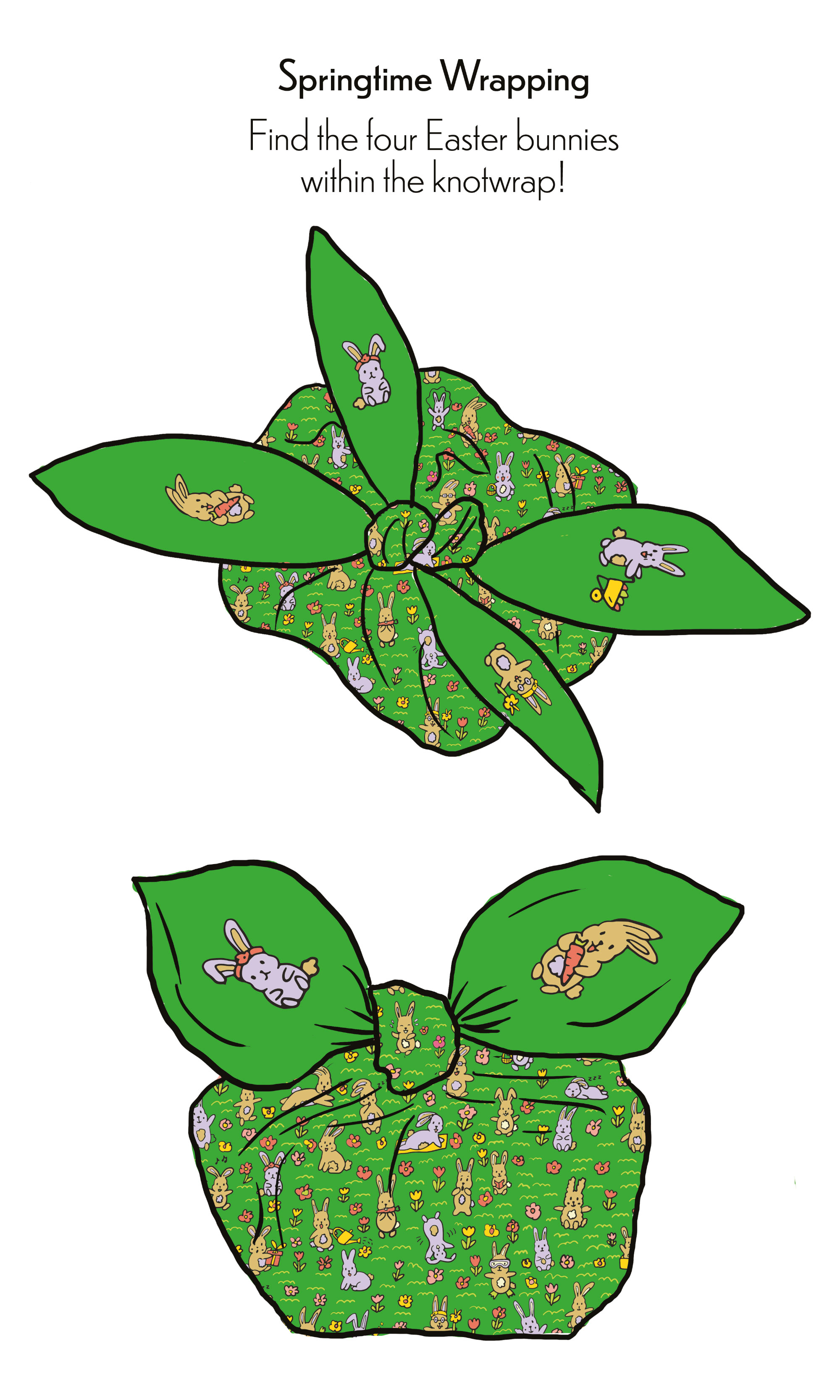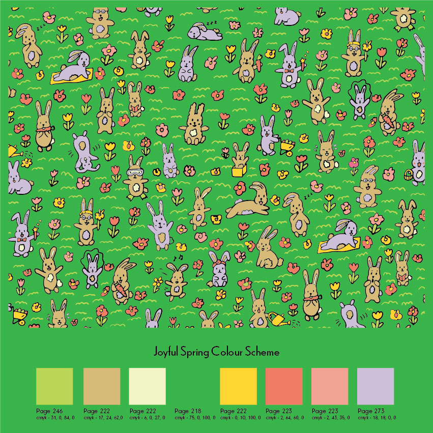 Personal projects - A bright coloured and playfully illustrated grid for a spring gift box and a super cute bunny pattern that can be used for a fabric gift wrap, as shown below.